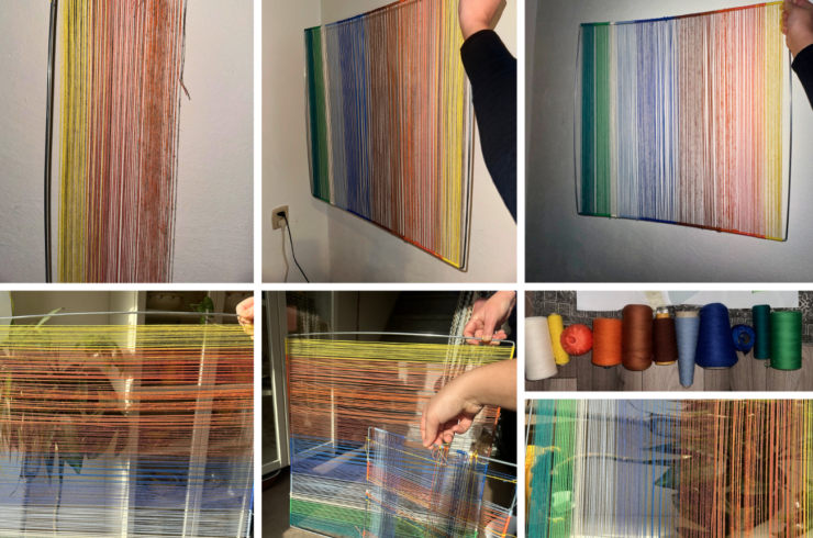 Ik heb er voor gekozen om drie lossen panelen te maken van glas. Dit gebaseerd op kleur en groten. Ook heb ik in elk paneel een stukje glas bewerkt waarin weef details zijn toegevoegd. Deze lijnen heb ik op gevoel toegevoegd en laten brengen het glas en de panelen samen.