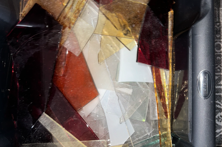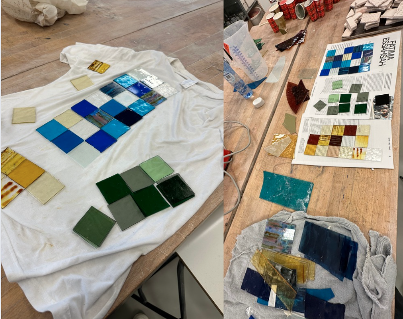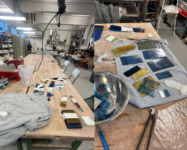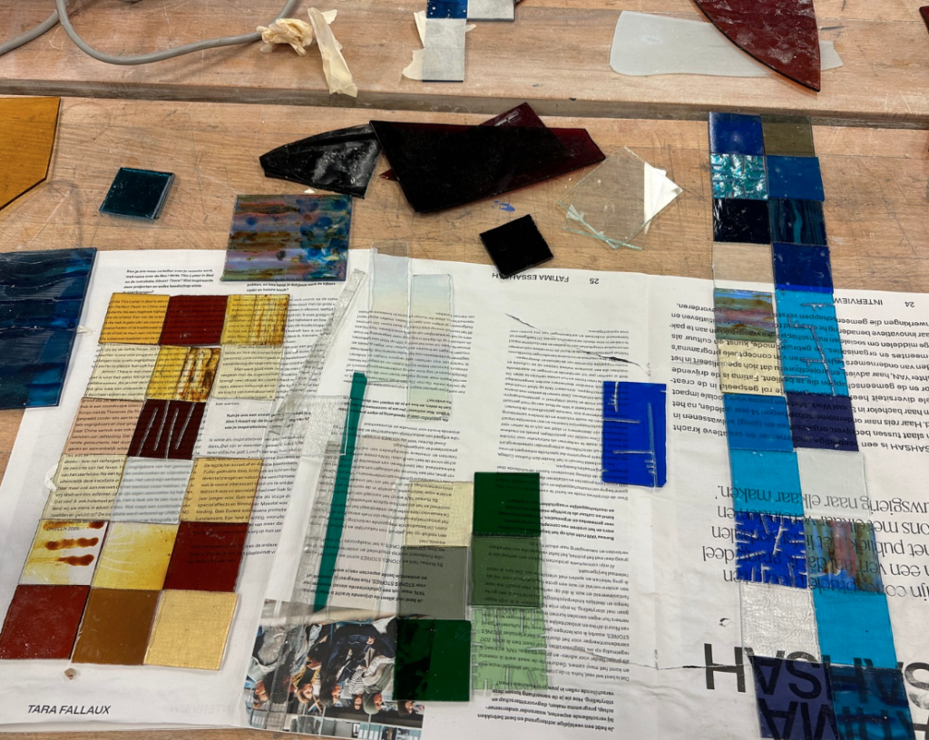 Om dit concept uit te voeren he bik glas nodig. Hierom heb ik contact opgezocht met verschillende glas kunstenaars of hun rest materiaal hebben die ik kan gebruiken. Ik heb glas gekregen van kunstenaar Robin de Koning uit Amsterdam Noord en van Marije van AT6 een kunstenares uit Alkmaar die glas in lood werken maakt voor kerken door heel Nederland!