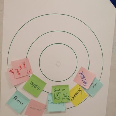 Iedereen kwam met thermen die goed aansloten aan mijn concept zoals: vrijheid, natuur, een goed gevoel. Toch zag niemand de link met het familie portret. Dit snap ik zelf ook omdat het lijkt op een tuin met insecten. Maar waar de insecten voor staan heeft voor mij een andere betekenis. Wel ben ik blij met de interpretaties van de groep omdat ze een gevoel weergeven die ik zelf nog niet had omschreven. Het gevoel van fijn is ook iets wat ik voel als ik aan mijn familie denk, goede aansluiting dus.