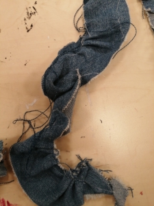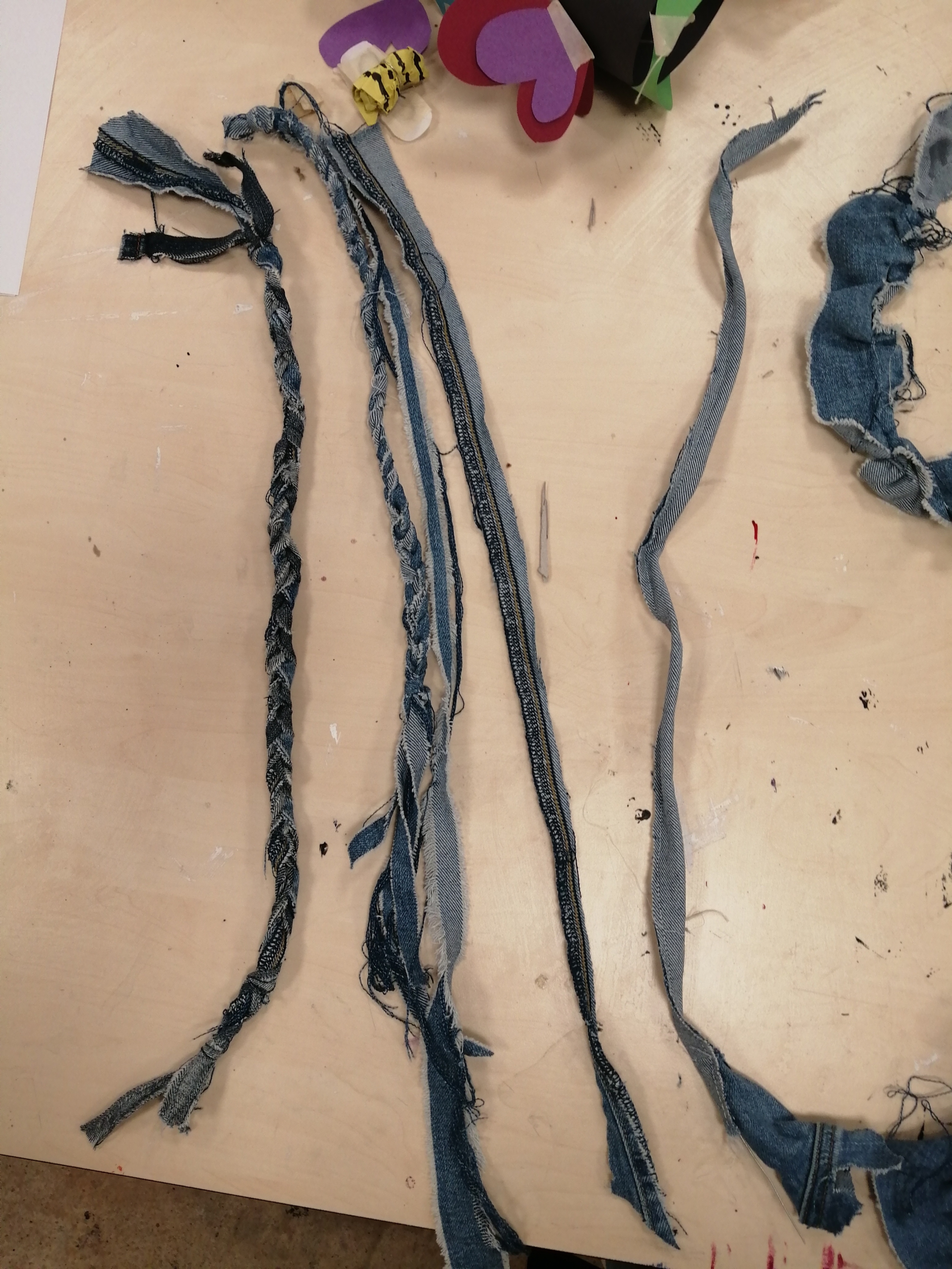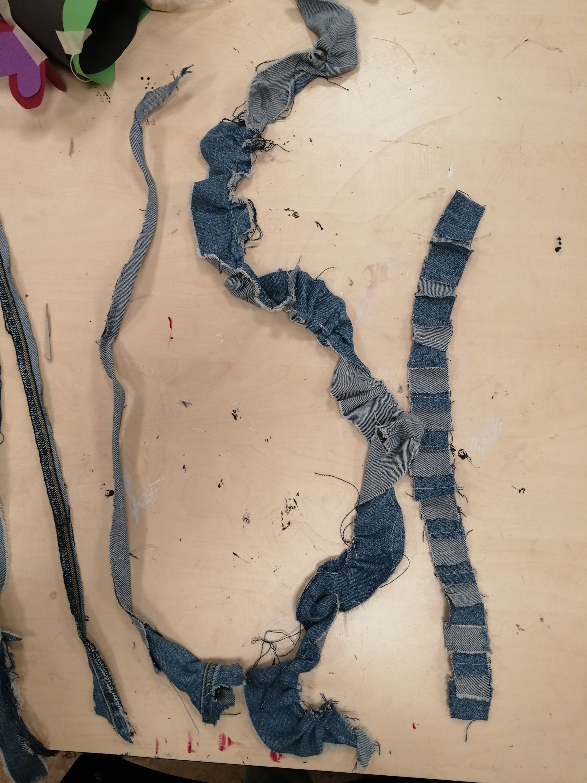 Wat ik dit semester bij 3D heb geleerd, is dat ik het heerlijk vind om te experimenteren. Experimenteren past het beste bij mijn creatieve proces, omdat ik vaak door experimenteren tot een eindwerk kom waar ik tevreden mee ben. Voor mijn 3D-project besloot ik een groot werk te maken. Ik wilde iets doen wat ik nog niet eerder had gedaan, omdat ik het belangrijk vind om dit jaar te gebruiken om te experimenteren en te ontdekken wat ik wil doen in het derde leerjaar. Ik koos ervoor om twee nieuwe technieken te gebruiken. Het leren van edelsmeden vond ik erg leuk, ook al kostte dit extra tijd. Hier heb ik geëxperimenteerd met de technieken, door dingen te doen die eigenlijk niet horen, zoals het gieten van zamac in water. Zo kwam ik tot vormen die ik heb gebruikt in mijn eindwerk! Ik merkte dat dit proces soepel verliep in tegenstelling tot het maken van de bloemen. In het begin had ik moeite met de naaimachine, maar uiteindelijk kreeg ik het onder de knie en kon ik de bloemen maken. Het maken van de bloemen nam meer tijd in beslag dan ik had verwacht, waardoor ik er slechts twee heb kunnen maken. Ik vind het erg leuk dat de blaadjes van de bloemen bestaan uit verschillende stukken denim. Dit komt ook doordat ik het gewoon ben gaan doen. Iets wat ik een positieve eigenschap vind van mezelf die ik graag mee wil nemen naar leerjaar 3.